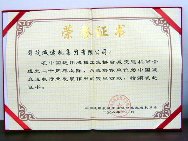 2008年,獲得中國減變速機行業20年發展“突出貢獻獎”