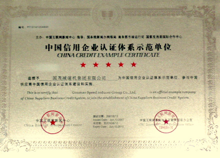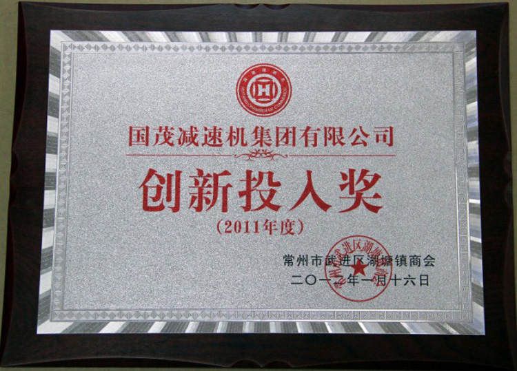與此同年,江蘇國茂減速機股份有限公司還接連獲得“江蘇省高新技術企業”、“江蘇省工程技術中心”、“常州市四星級明星企業”、“常州市A級納稅信用等級單位”、“武進區‘十一五’行業發展成就獎”、“湖塘鎮商會會長單位”等殊榮。另外,江蘇國茂還于2011年,光榮獲得“江蘇省企業文化建設先進人物”、“江蘇省平安企業”、“武進區首屆慈善事業突出貢獻獎” 等等重要榮譽;在2012年1月份,成功被評定為“常州市五星級明星企業”。